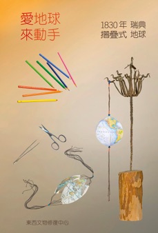 這次榮幸應法鼓文理學院邀請,展出Edwin Heim先生的作品,先生在亞洲雖是陌生,在歐美卻是一位具盛名的老前輩.他的小品蘊含幾分東方趣味,色彩與造型簡明,僅用摺、捲、縫方法,可啟發觀者靈感、製作的樂趣.展覽同時,響應貴校「愛地球」的宗旨,特別設計一個小遊戲:讓大家「來動手」作一個1830年瑞典的「摺疊式地球儀」,親自體驗手指的魔力.
