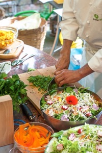 我們設計了六道素食,共用十六種香草,及食用花。來至印度、台灣、意大利,新疆、德國的客人,每人手持食譜,