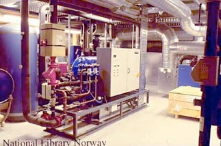 室內空氣之調節,每小時由山洞外吸入新鮮空氣,必須經過五道過濾器檢驗品質,才轉入庫房。其中 10% 是經過濾的新鮮空氣和 90% 舊空氣,兩者混合循環使用「只在同一庫房內,以免不同典藏品所釋放之廢氣成分混雜,會影響其他藏品之安全」,每一個貯藏庫房,由於藏品種類材質之不同所需保存條件也不一致,皆由電腦個別控制,但還需工作人員隨時檢查,以防意外狀況發生。新式的環境測量器,小如一包香菸,放入書架間、藏盒內,甚為方便,所以也被「山洞庫房」採用。目前挪威國家圖書館的最大典藏困擾則是對磁帶,電腦軟體,影片,等存放條件尚無理想的標準。