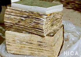 1. 書本 字畫 文獻-紙受潮膨漲,可吸 200% 水份,使原書裝訂變形,紙張曲捲,不可能自動恢復原狀,紙纖維加速老化,腐爛破碎。
