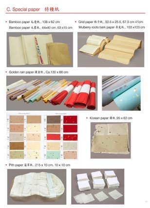 These are special papers outside groups a) and b) based on particular materials and production techniques. In all, there are 31 types of paper and 3,738 sheets
