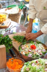 Das letzte Konzert in der Werkstatt war schon lange her. Hundert Leute hatten es besucht, doch der Juni ist Urlaubszeit und daher für viele ungünstig. Um das Konzert attraktiver zu machen, beschloss ich, es mit einem Heimkochkurs zu kombinieren. Hierfür engagierten wir Herrn Enrico Steuer, einen Avantgardekoch der Bio-Bewegung. Der Kochkurs war vegetarisch und umfasste die Zubereitung von sechs Gängen, wobei insgesamt 16 verschiedene Kräuter verwendet wurden. Herr Steuer erklärte unserem internationalen Publikum, bestehend aus 35 Leuten, ganz genau die einzelnen Arbeitsschritte. Beim Kochen wurde viel gelacht und gemeinsam genossen wir anschließend unser Menü.