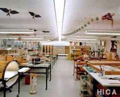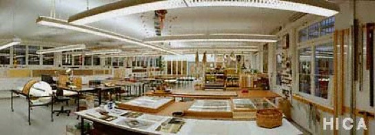 Bei der Arbeit benötigt man natürliches Licht aus Norden und Süden. Außerdem brauchen wir kaltes Kunstlicht, damit die Farben gut beurteilt werden können. Außerdem werden konstante Luftfeuchtigkeit und Temperatur benötigt. Darum ist die Werkstatt großflächig mit Fußbodenheizung ausgestattet.