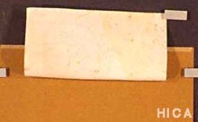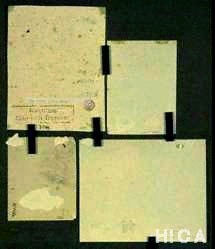 Hier sehen Sie die Rückseite des Bildes. Sie ist stark vergilbt. Das Ligninhaltige Papier wird heute nicht mehr verwendet. Heute benutzen wir säurefreies Papier.