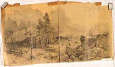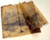 Hier zeige ich Ihnen zwei Landschaftsbilder, die auf Pergament gezeichnet sind. Die Restaurierung von Pergamentpapier ehört zu den schwierigsten Aufgaben, weil es durch seine Herstellung den Papiercharakter verloren hat.