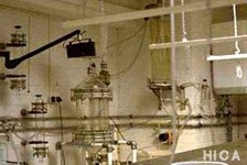 Bitte folgen Sie mir nun in den Naßraum. Hier werden die Arbeiten ausgeführt, die Wasser und Lösungsmittel benötigen und die Reinigungsarbeiten sind. Dies ist ein kleines Wirbelbett, in dem hartes Wasser zum Neutralisieren von Papier hergestellt wird. Der pH-Wert von vielen Kunstwerken auf Papierbasis sinkt durch falsche Lagerung und Umweltbedingungen auf einen Wert unter 7. Das bedeutet, dass das Papier sauer wird und die Zersetzung beschleunigt wird.